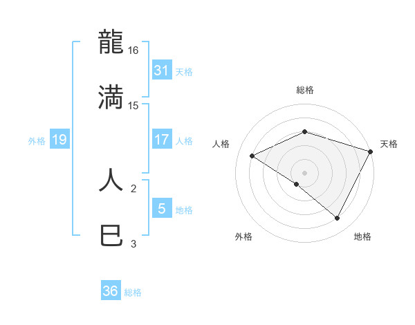 龍満 人巳さんを姓名の画数から五運を鑑定