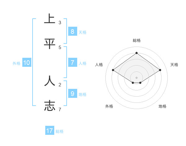 上平 人志さんの総格は17画の4点!
