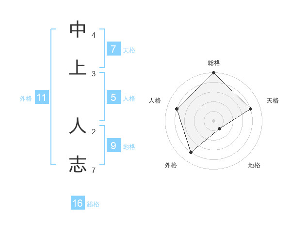 中上 人志さんの総格は16画の5点!