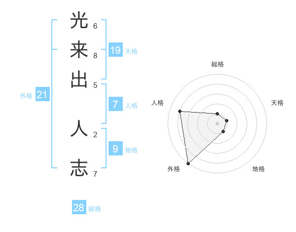 光来出 人志さんの外格は21画の5点!