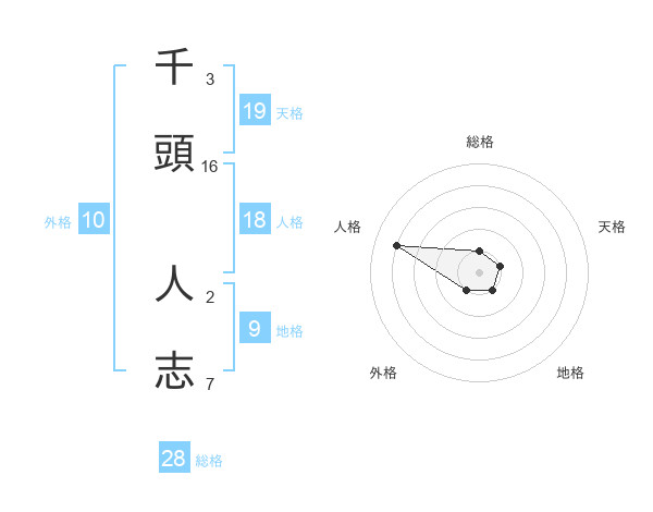 千頭 人志さんの総格は28画の1点!