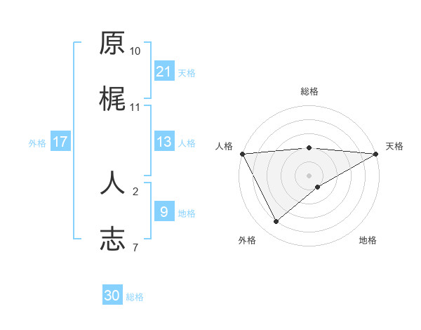 原梶 人志さんの総格は30画の2点!