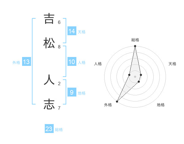 吉松 人志さんの総格は23画の5点!