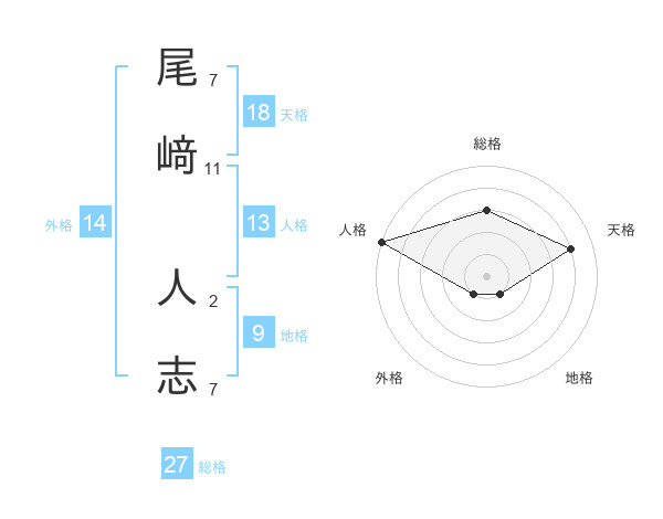尾﨑 人志さんの総格は27画の3点!