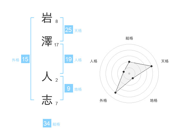 岩澤 人志さんの総格は34画の2点!