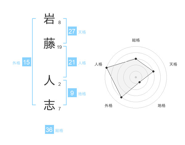 岩藤 人志さんの総格は36画の3点!