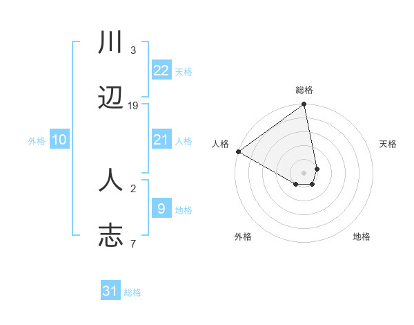 川辺 人志さんの総格は31画の5点!