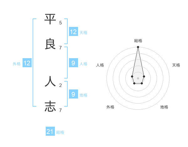 平良 人志さんの総格は21画の5点!