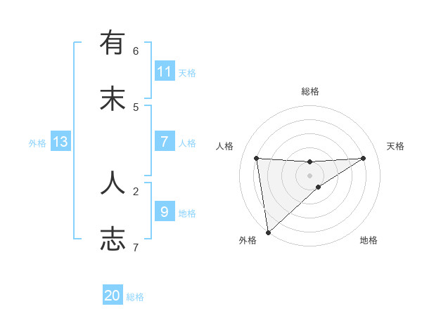 有末 人志さんの外格は13画の5点!