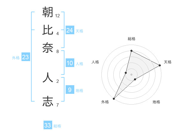 朝比奈 人志さんの総格は33画の4点!