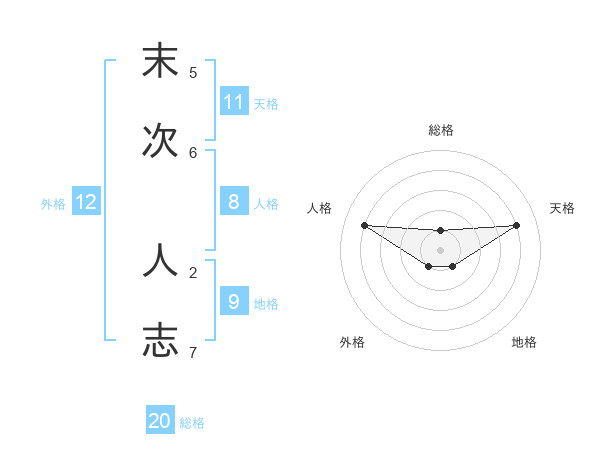 末次 人志さんの総格は20画の1点!