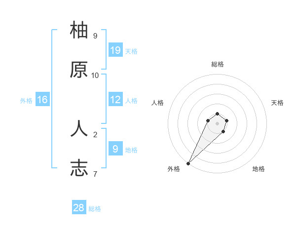 柚原 人志さんの総格は28画の1点!