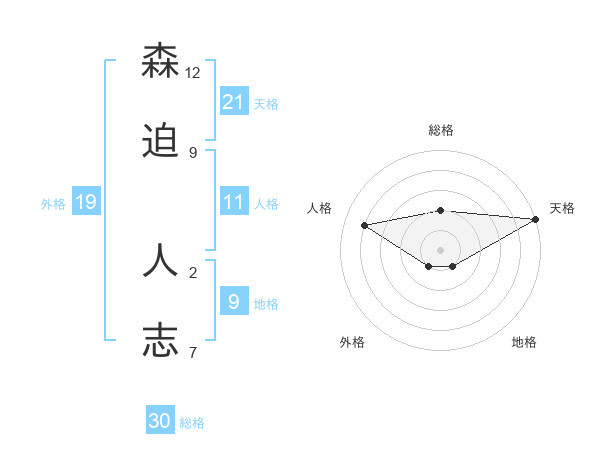 森迫 人志さんの天格は21画の5点!