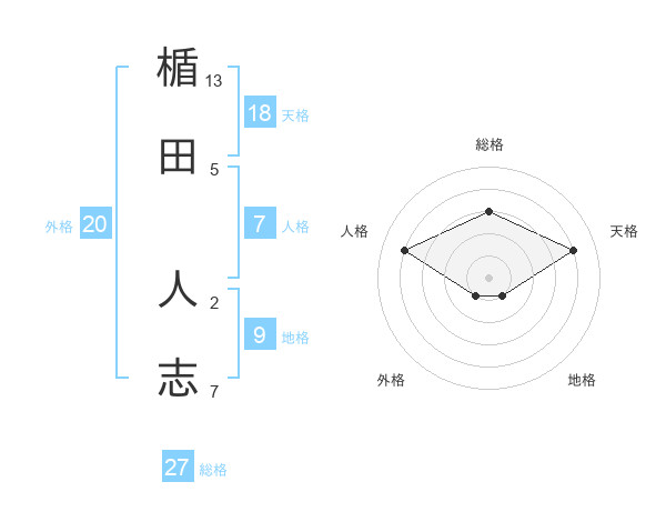楯田 人志さんの総格は27画の3点!