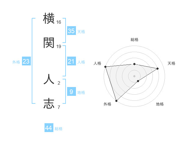 横関 人志さんの天格は35画の4点!