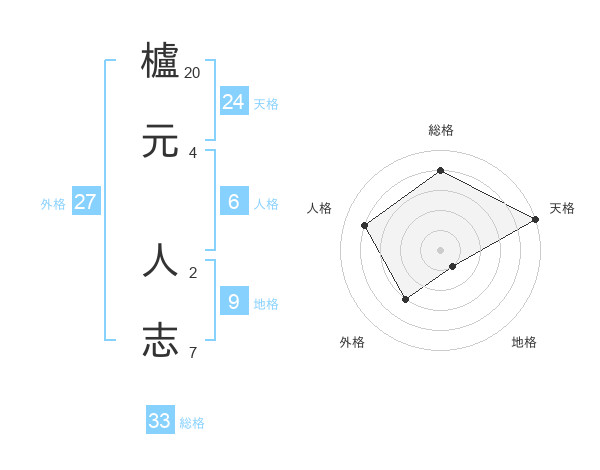 櫨元 人志さんの天格は24画の5点!