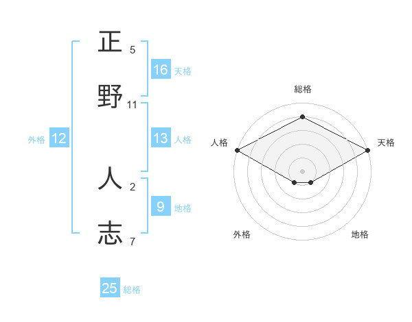 正野 人志さんの天格は16画の5点!