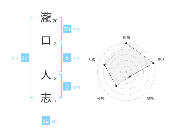 瀧口 人志さんの天格は23画の5点!