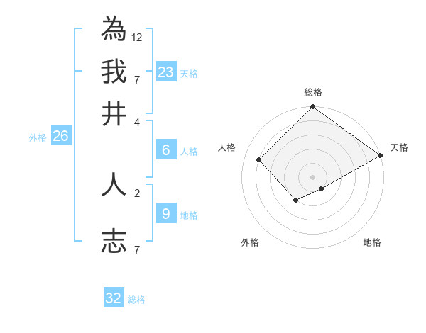 為我井 人志さんの天格は23画の5点!