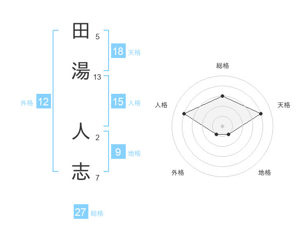 田湯 人志さんの総格は27画の3点!