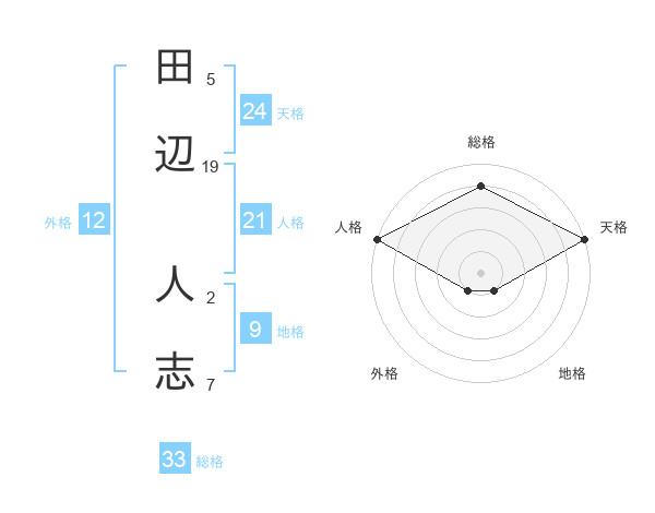 田辺 人志さんの天格は24画の5点!