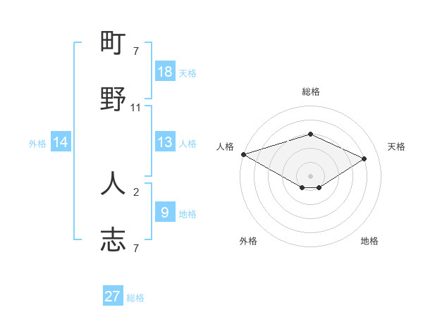 町野 人志さんの総格は27画の3点!