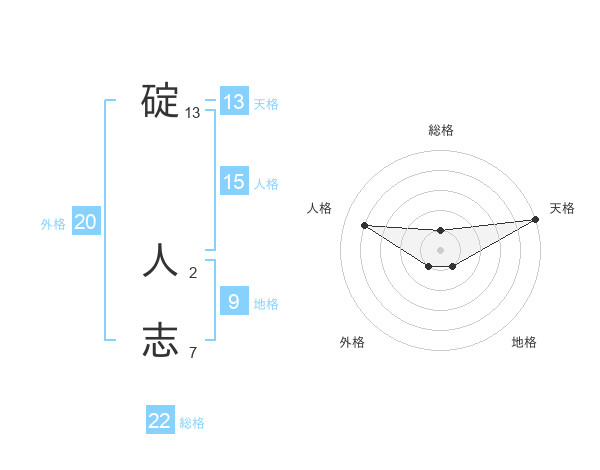 碇 人志さんの天格は13画の5点!