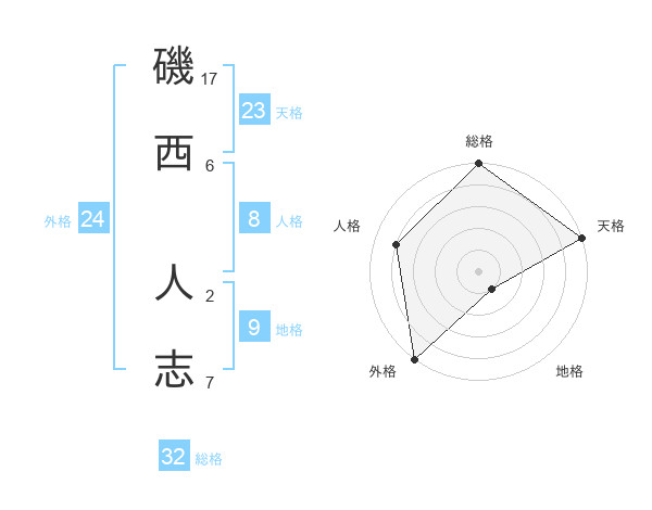 磯西 人志さんの天格は23画の5点!