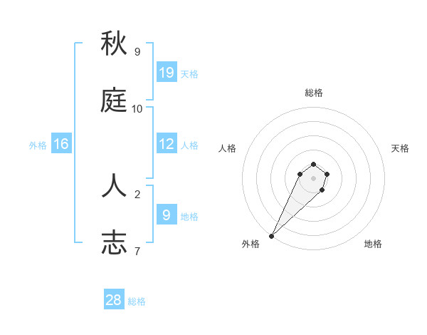 秋庭 人志さんの外格は16画の5点!