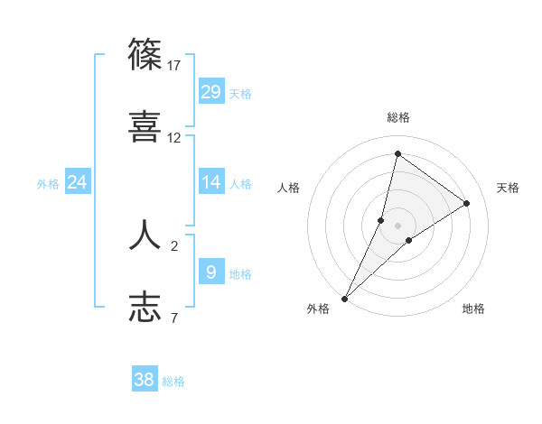篠喜 人志さんの総格は38画の4点!