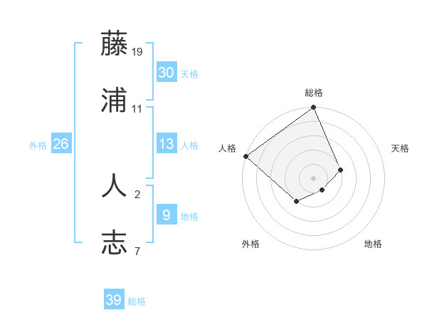 藤浦 人志さんの総格は39画の5点!