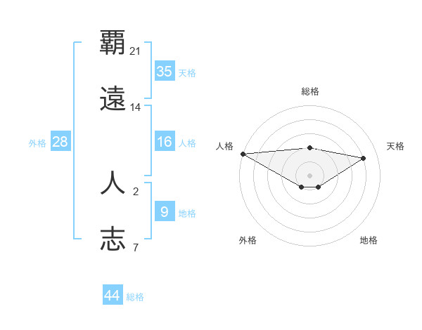 覇遠 人志さんを姓名の画数から五運を鑑定