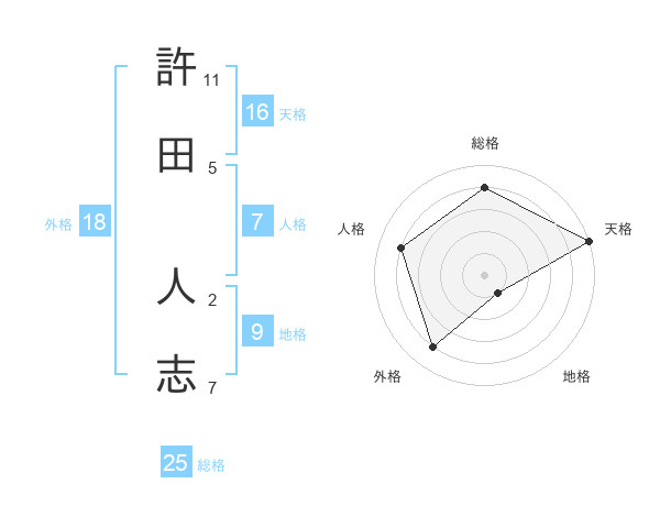 許田 人志さんの総格は25画の4点!