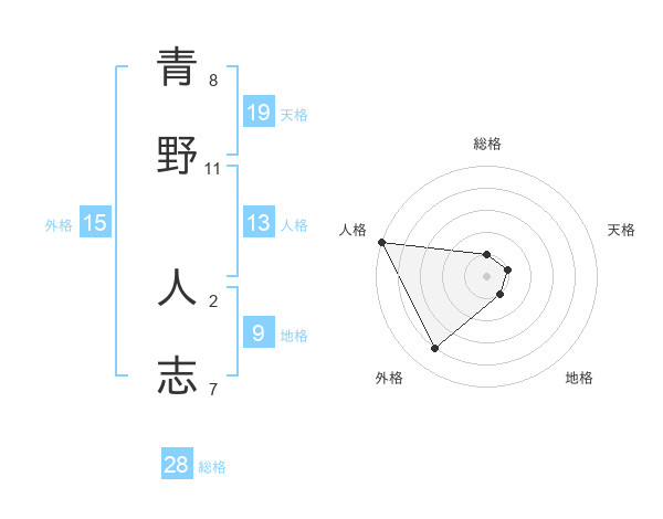 青野 人志さんの総格は28画の1点!