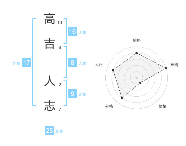 高吉 人志さんの外格は17画の4点!