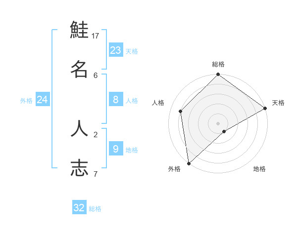 鮭名 人志さんを姓名の画数から五運を鑑定