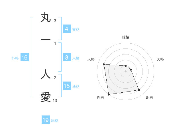 丸一 人愛さんの外格は16画の5点!