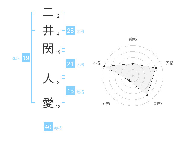 二井関 人愛さんの天格は25画の4点!