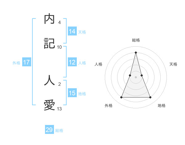 内記 人愛さんの総格は29画の4点!