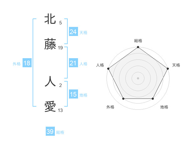 北藤 人愛さんを姓名の画数から五運を鑑定