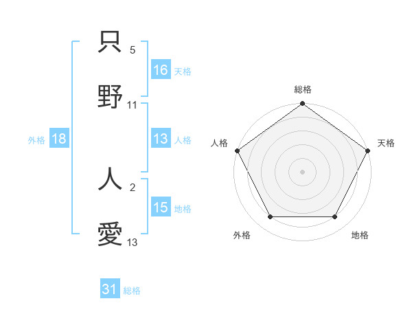 只野 人愛さんの総格は31画の5点!