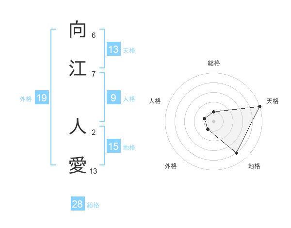 向江 人愛さんの天格は13画の5点!