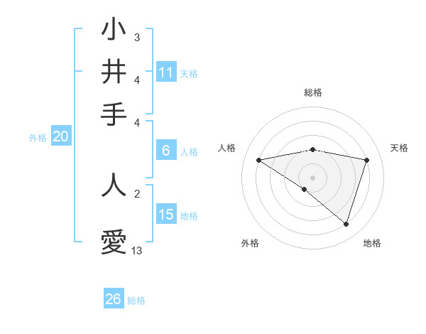 小井手 人愛さんの総格は26画の2点!