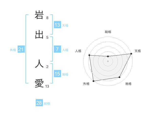 岩出 人愛さんを姓名の画数から五運を鑑定