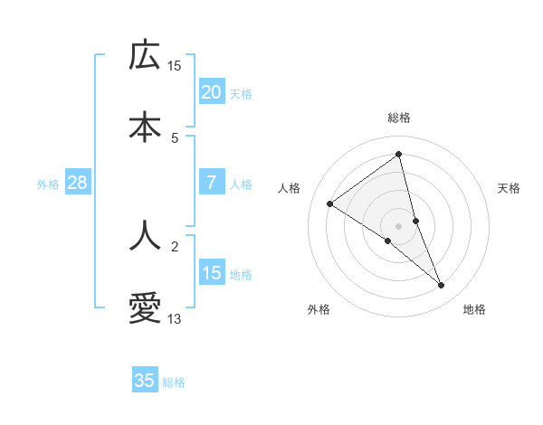 広本 人愛さんの総格は35画の4点!