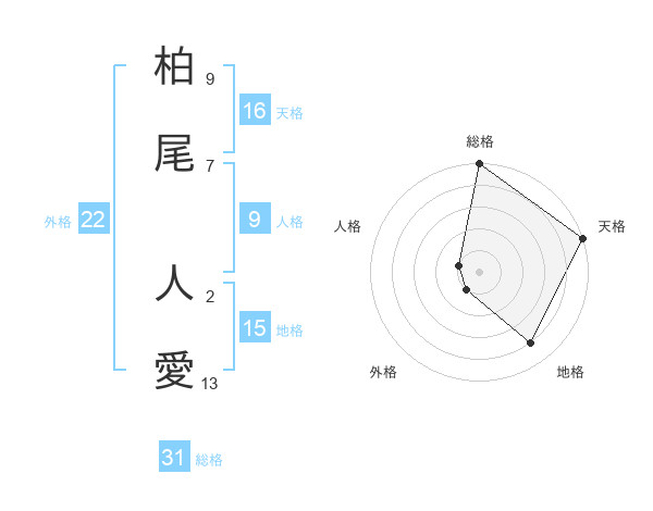 柏尾 人愛さんの天格は16画の5点!