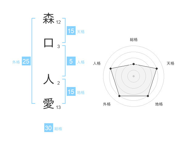 森口 人愛さんの天格は15画の4点!