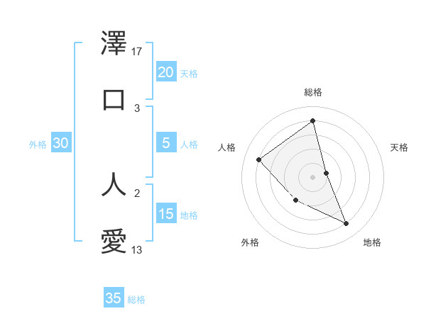澤口 人愛さんの天格は20画の1点!