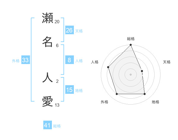 瀬名 人愛さんの総格は41画の5点!
