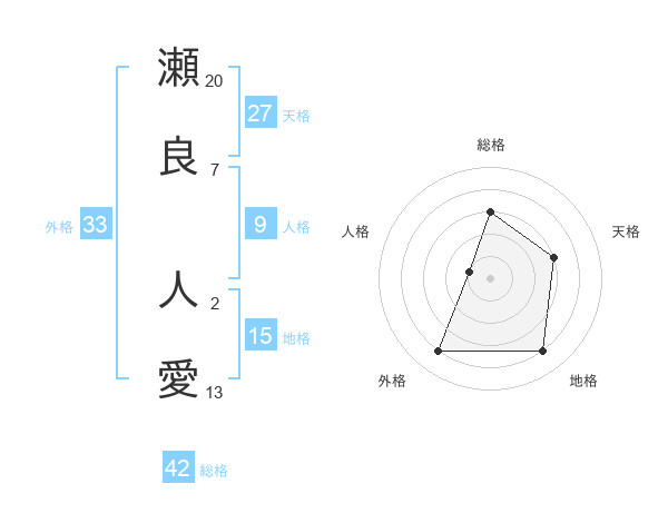 瀬良 人愛さんを姓名の画数から五運を鑑定